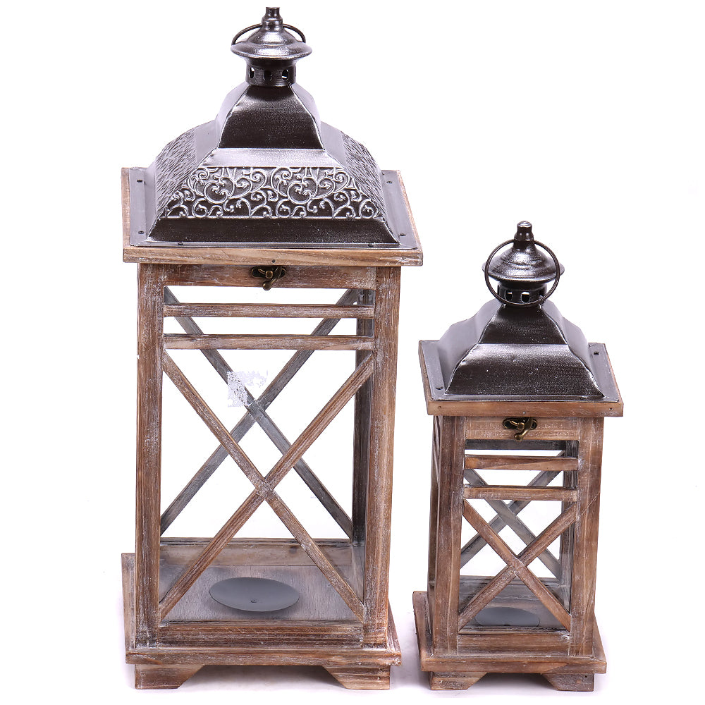 Dárkový set dřevěných luceren hnědé barvy 2 ks ve dvou různých velikostech.