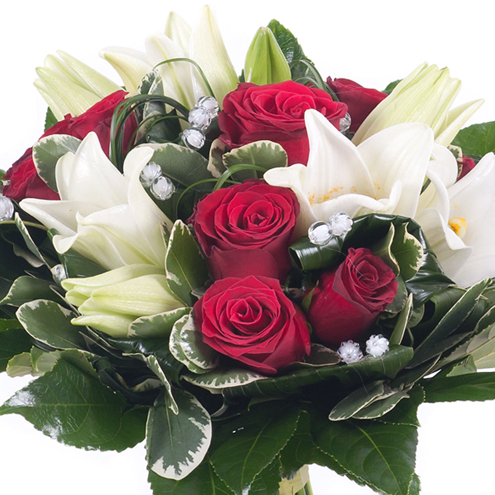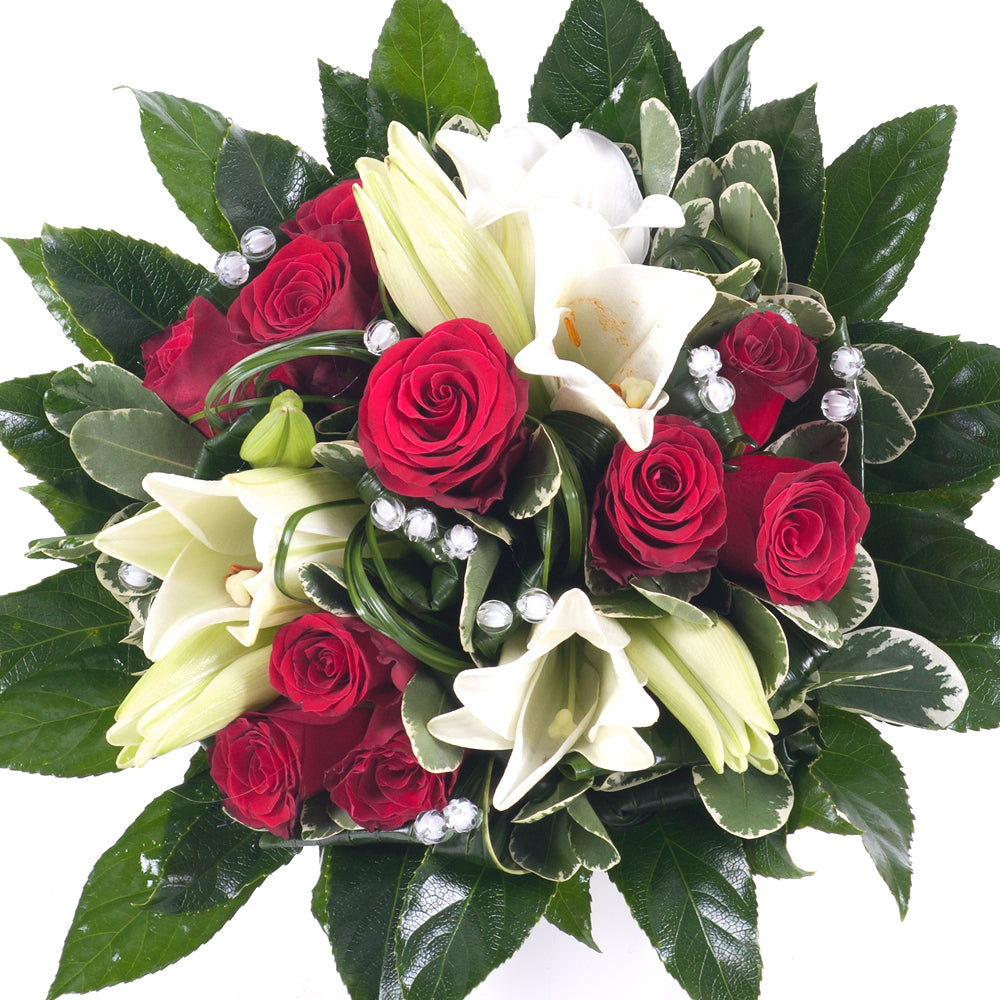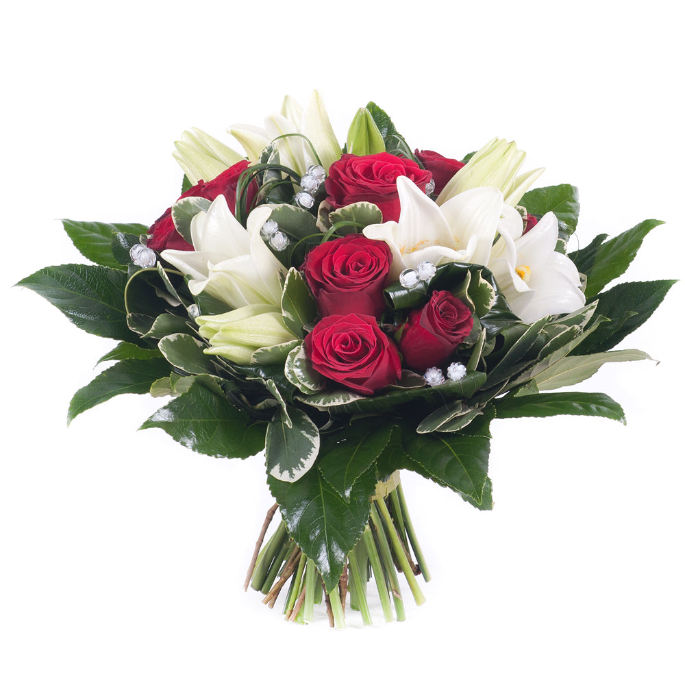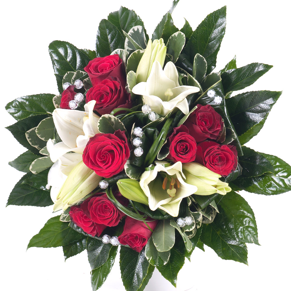 Elite červené růže a bílé lilie