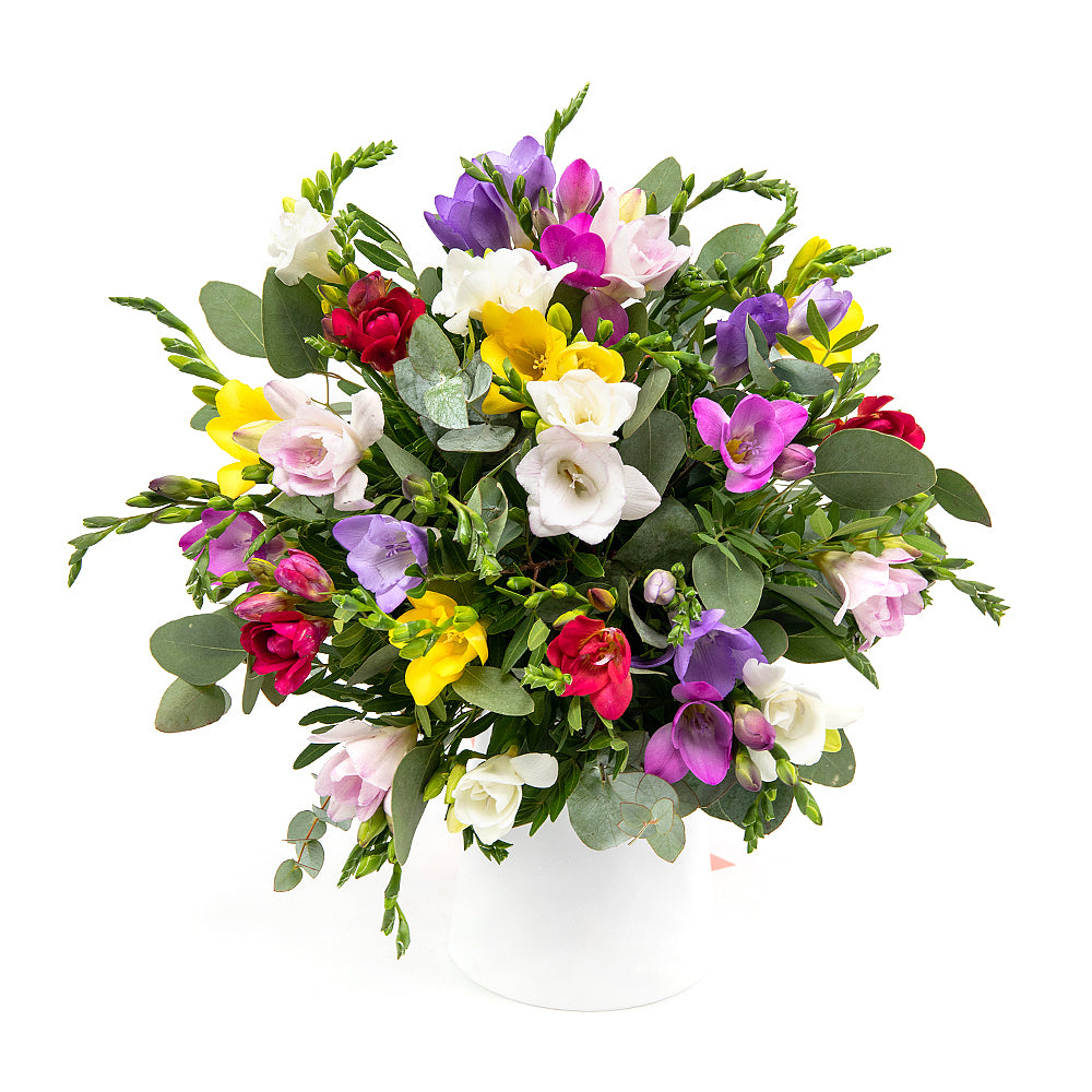 Kytice Elite barevné frézie je aranžována z barevných frézií, které jsou doplněny dekorační zelení a doplňky. Barevné provedení kytice nemusí odpovídat barvám na obrázku.