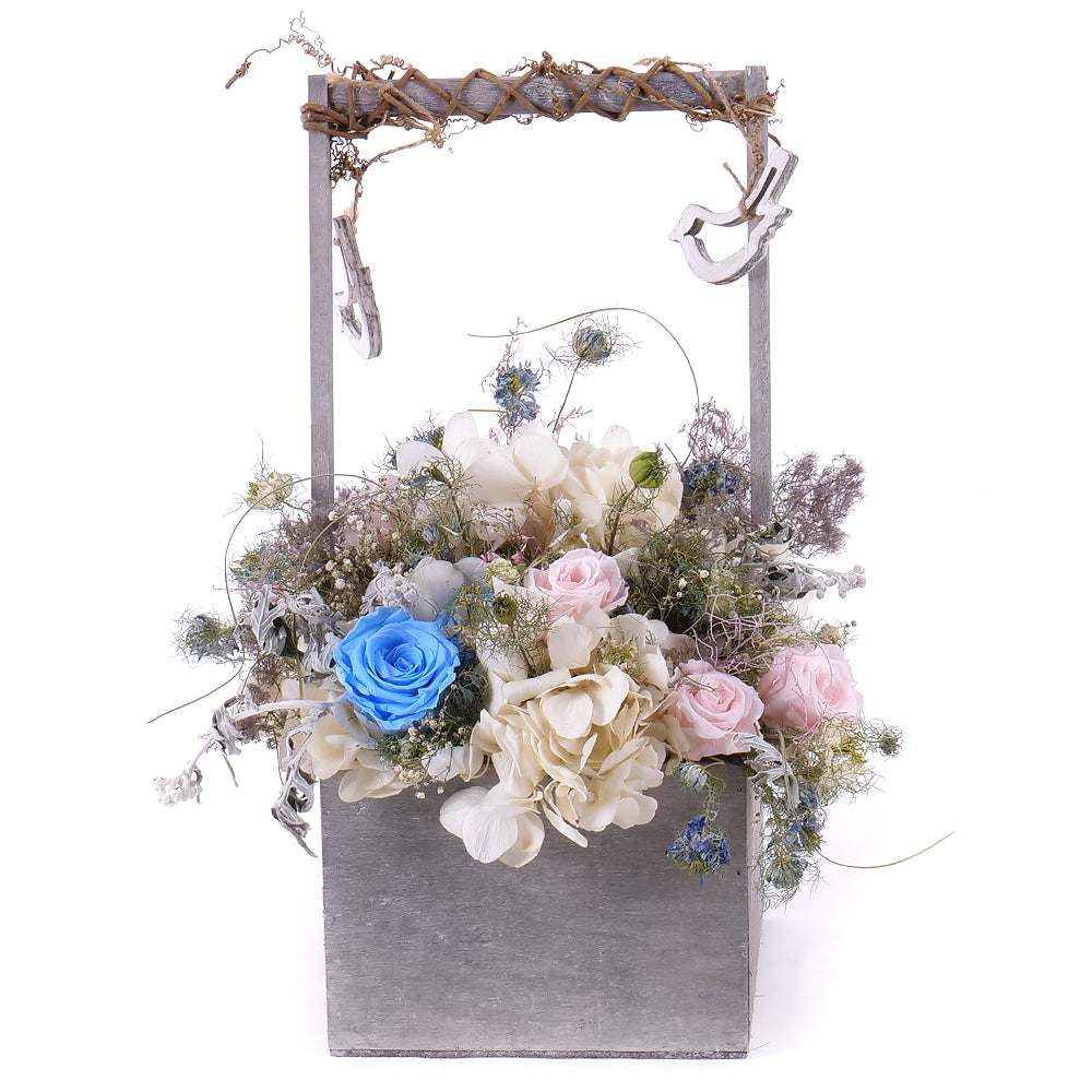 Darujte Vašim blízkym aranžmán s luxusnými trvácnymi kvetmi značky In Eterno v štýlovom drevenom boxe s rúčkou.SloženíDebnička výsad.drevo s vtáčikmi... Přečtěte si více