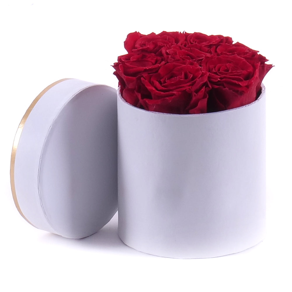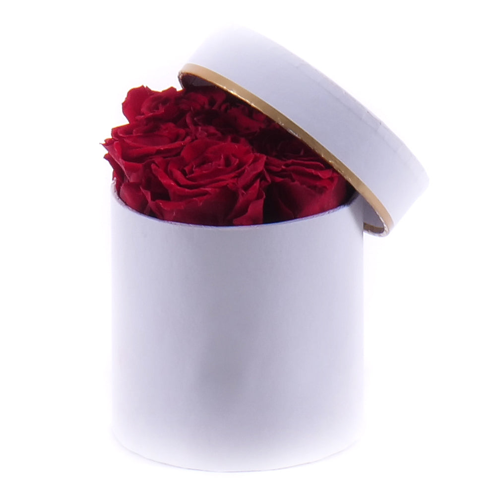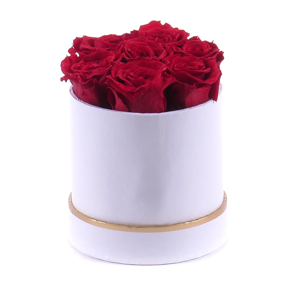 Elegantný mini flower box s nevädnúcimi In eterno červenými ružami. Aranžmán vhodný ako darček na každú príležitosť.