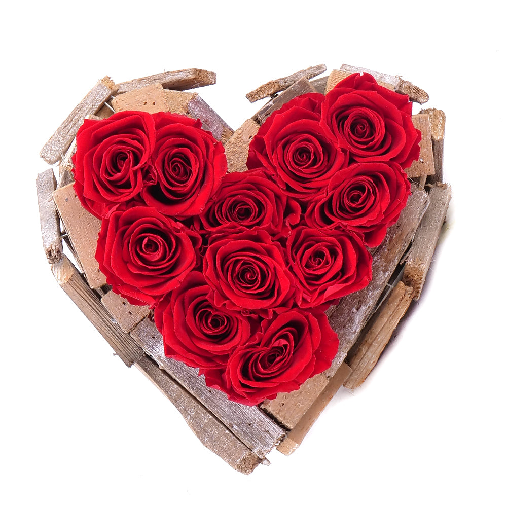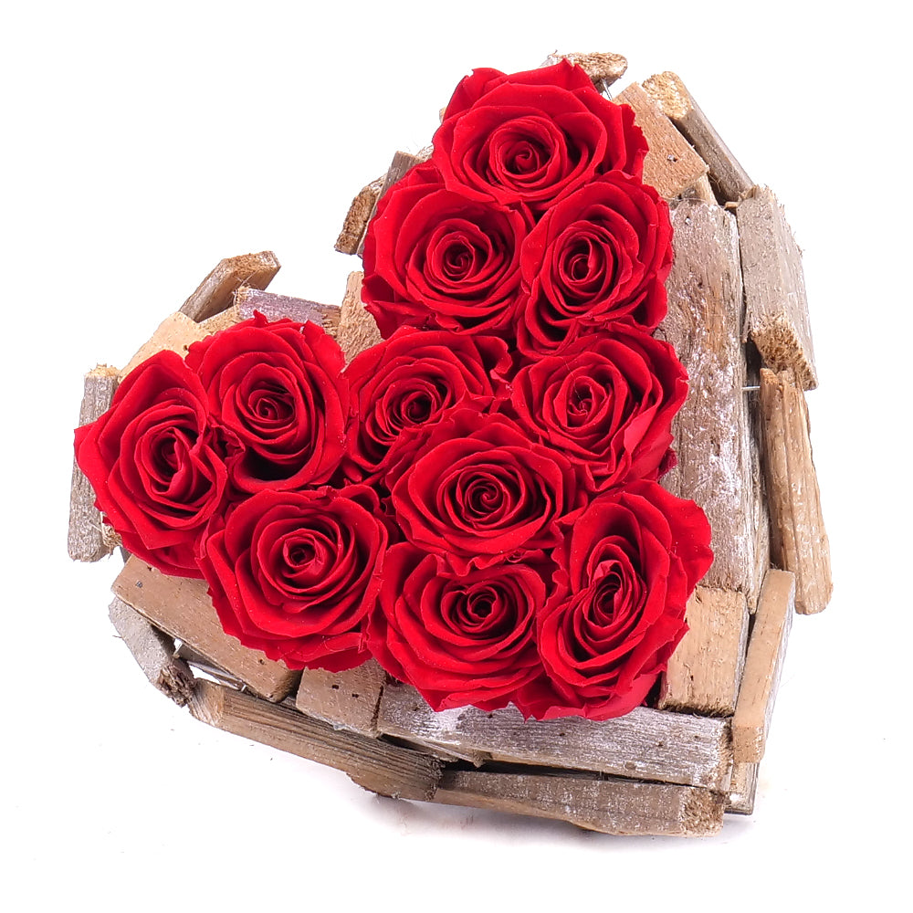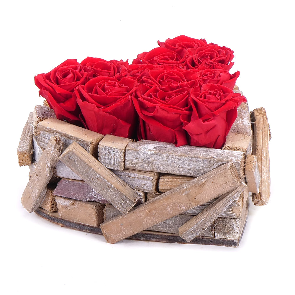 Toto elegantní aranžmá z červených In Eterno růží v dřevěném boxu ve tvaru srdce je symbolem vášně, lásky a nadčasové krásy. Dokonale zpracovaný dřevěný box ve tvaru srdce přidává aranžmá speciální romantický nádech, zatímco sytě červené růže, které si uchovávají svou krásu celé měsíce, vytvářejí působivý vizuální efekt. Tento dárek je ideální volbou pro vyjádření lásky při výročích, svátcích nebo jako gesto, které zanechá trvalý dojem. Perfektní způsob, jak potěšit ty, na kterých vám nejvíc záleží.