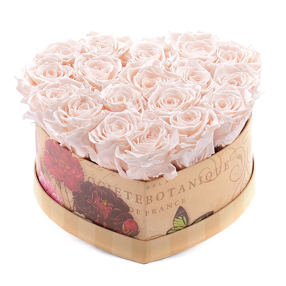 In eterno vintage srdce "L" 18 růží almond cream