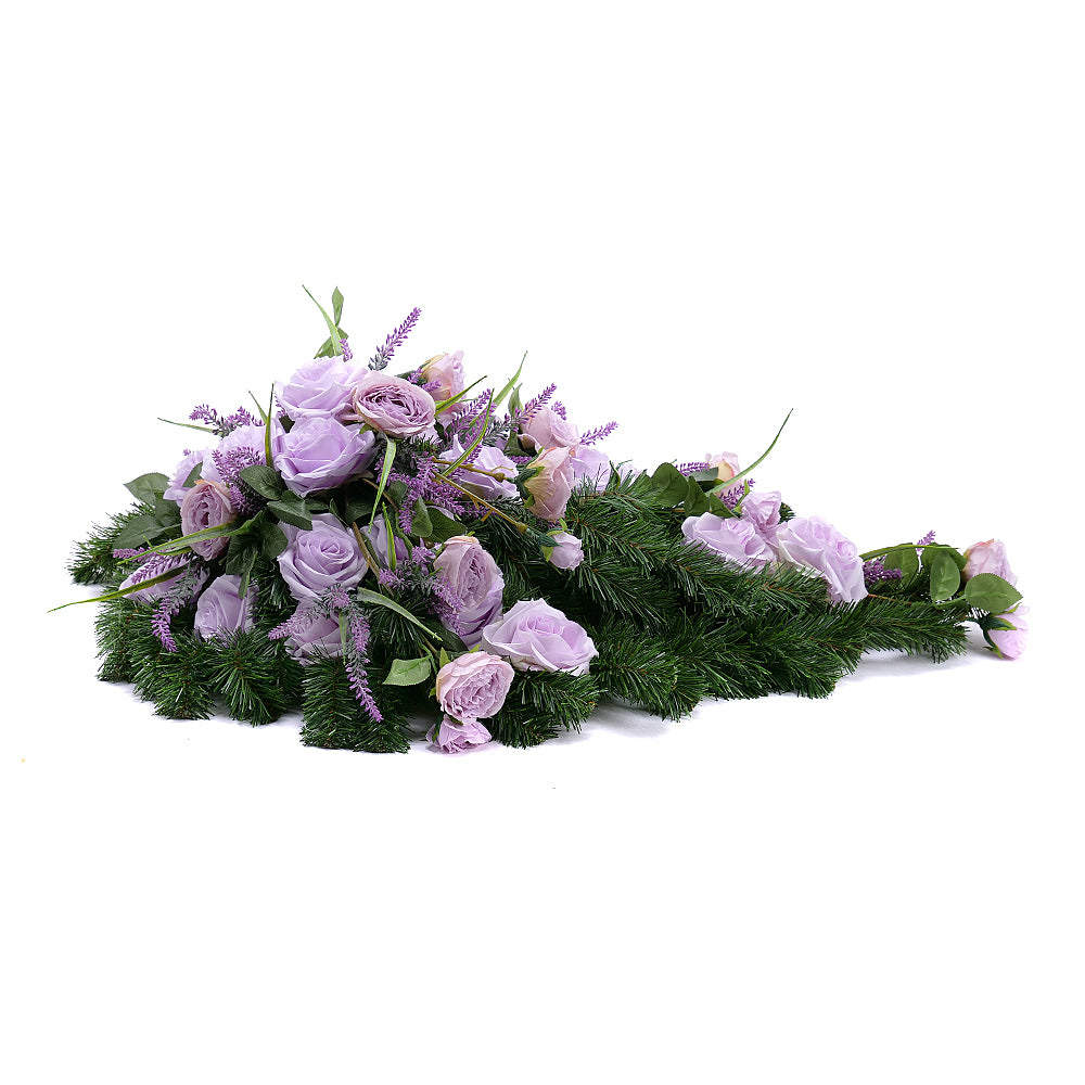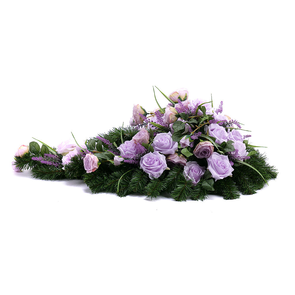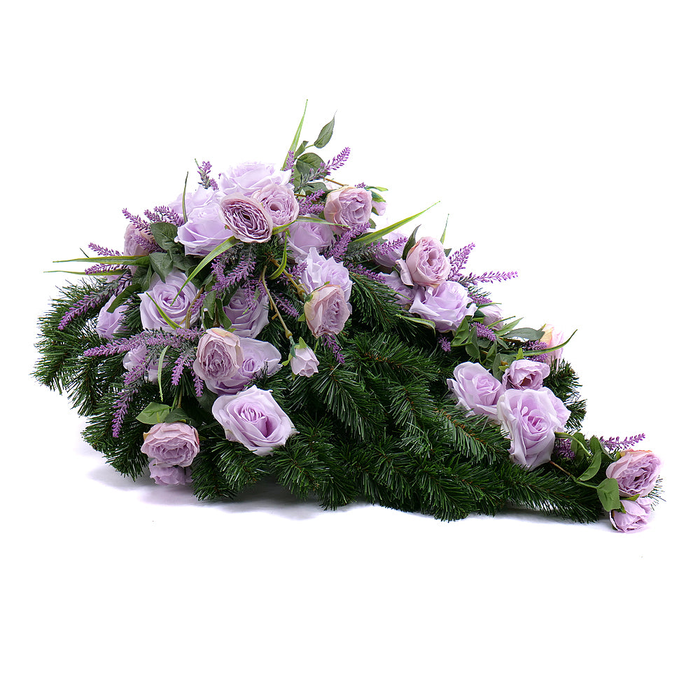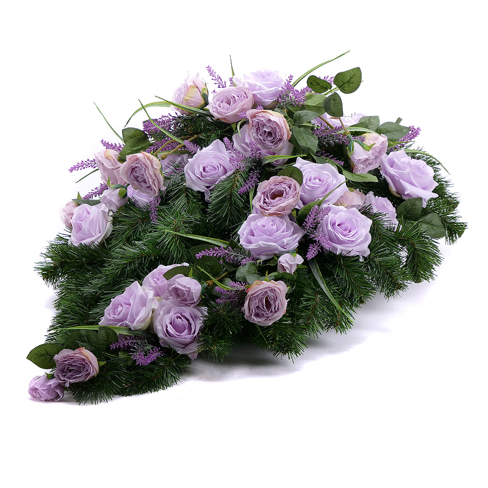 Uctíte si ty, kteří Vám chybí, umělým věncem ve tvaru slzy v jemné fialové barvy z umělých květů růží a levandule.