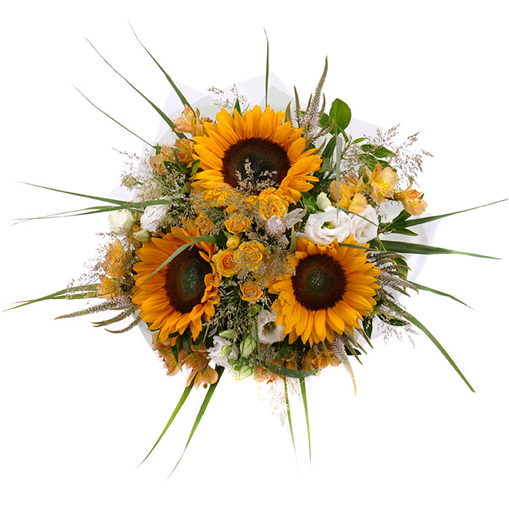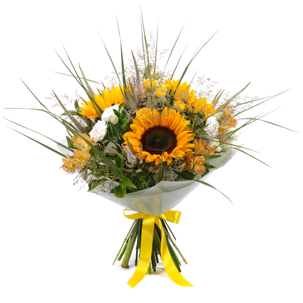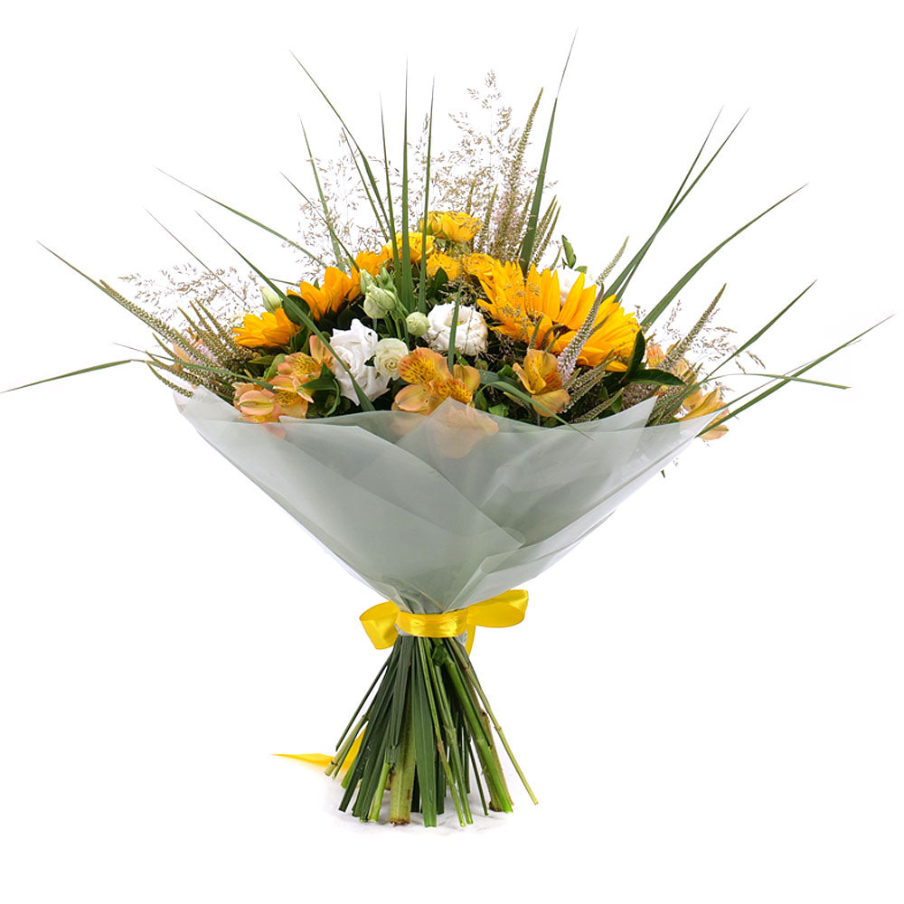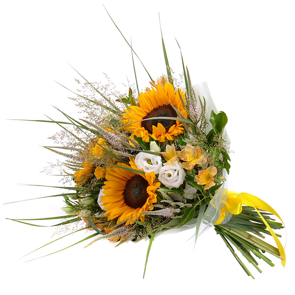 Kytica z lúčnych kvetov, tráv a prírodných materiálov. Dominantou kytice sú slnečnice, ktoré vnášajú do kytice energiu a optimizmus, alstromérie eleganciu a jemnosť. Prírodné doplnky dodávajú kytici rustikálny charakter. Ideálny darček pre milovníkov prirodzenej krásy a letnej pohody.