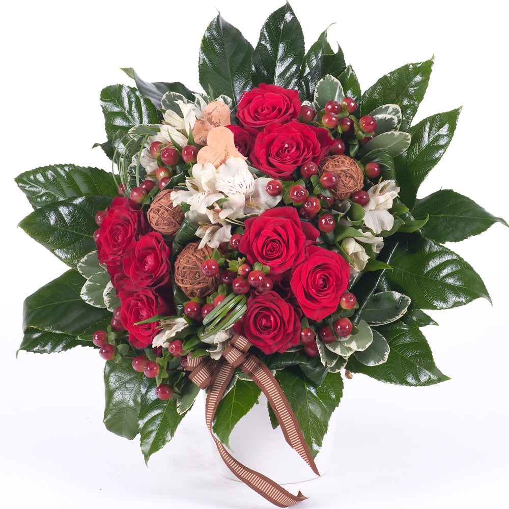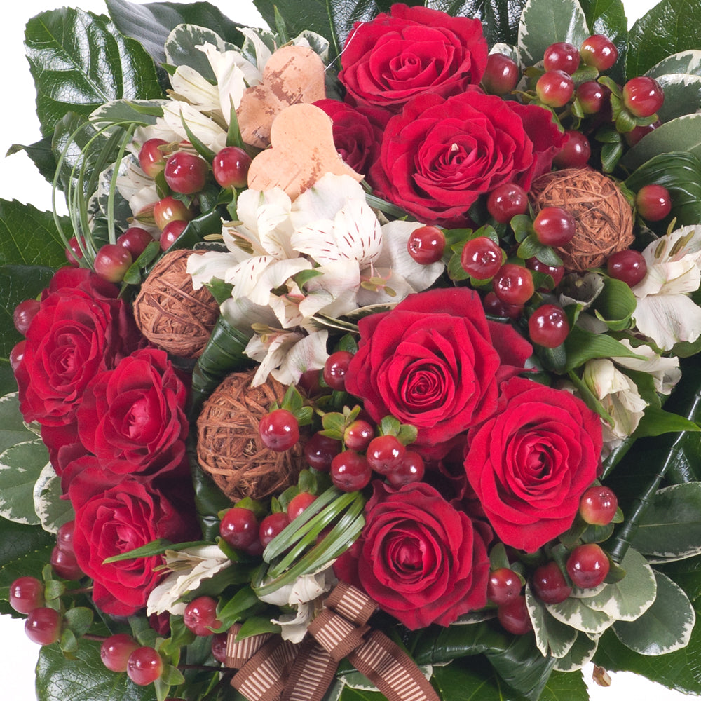 Kytice pro pána červené růže a hypericum