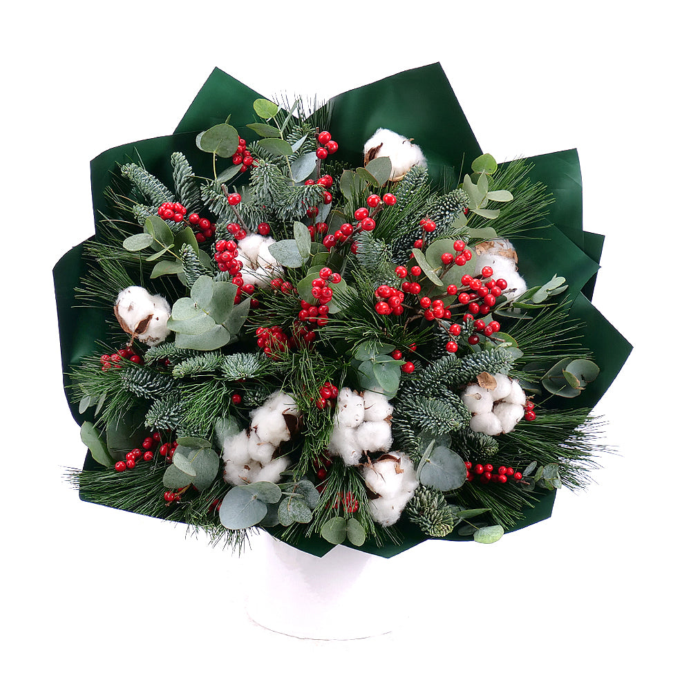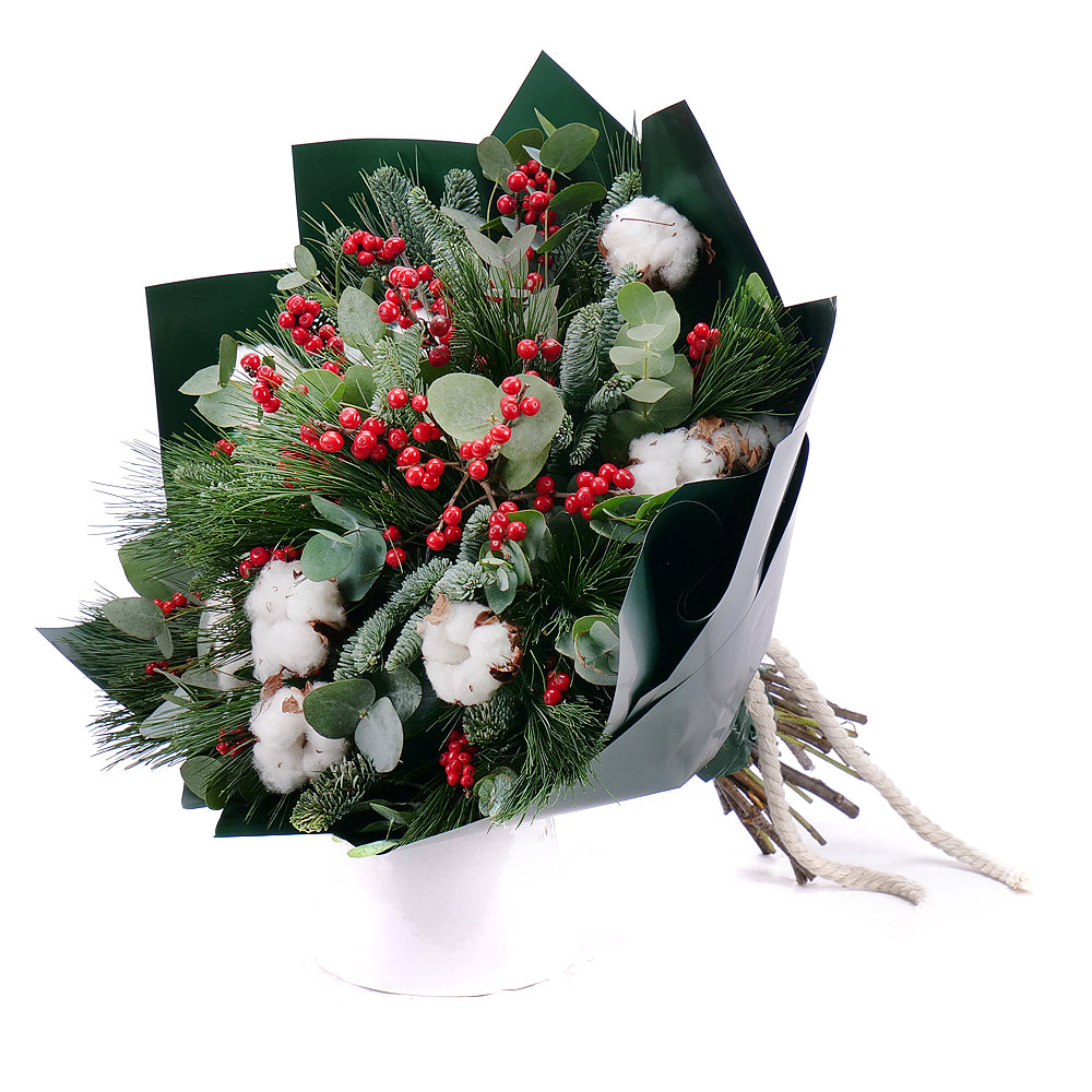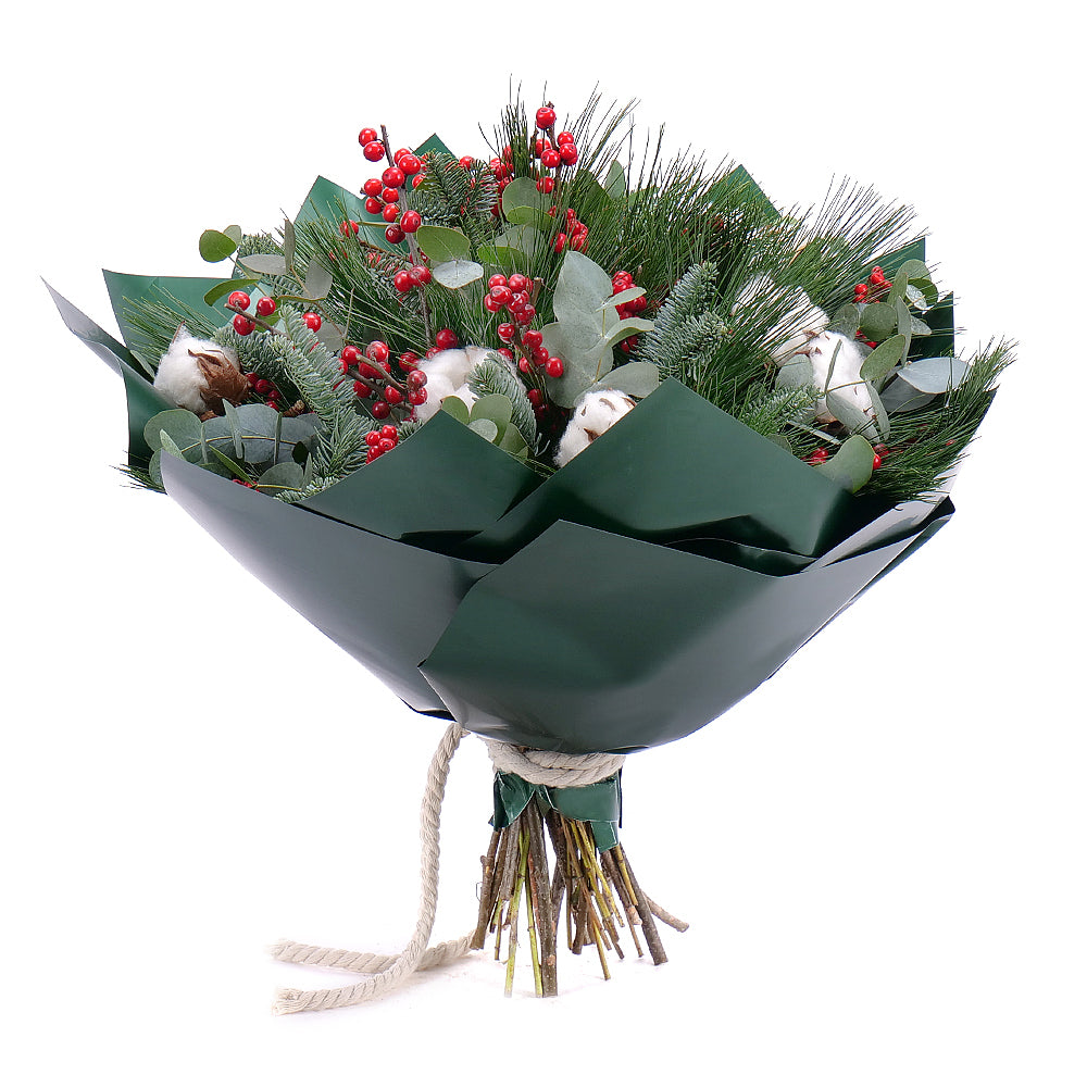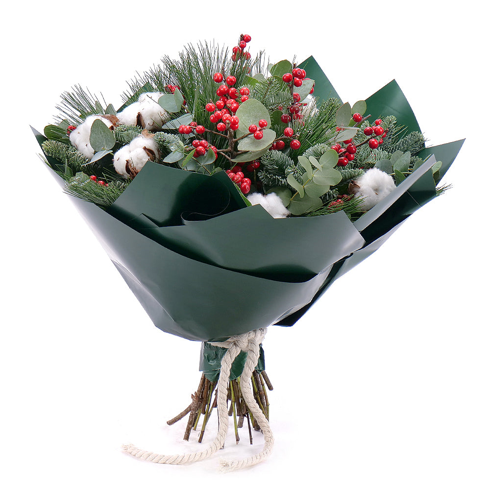 Zimní kytice ve stylovém papíře vhodně doplní vánoční sváteční atmosféru. Potěší Vás i Vaše drahé.