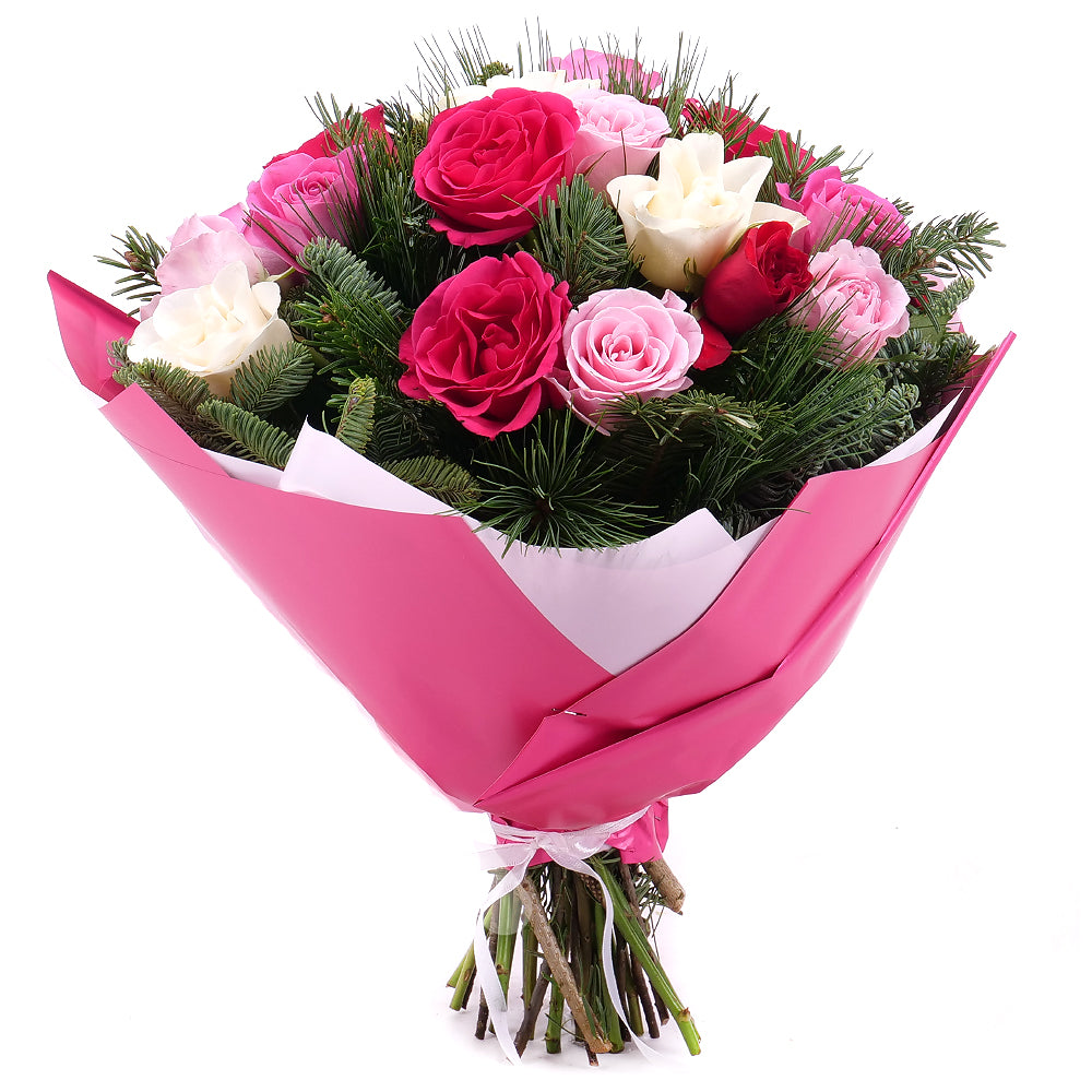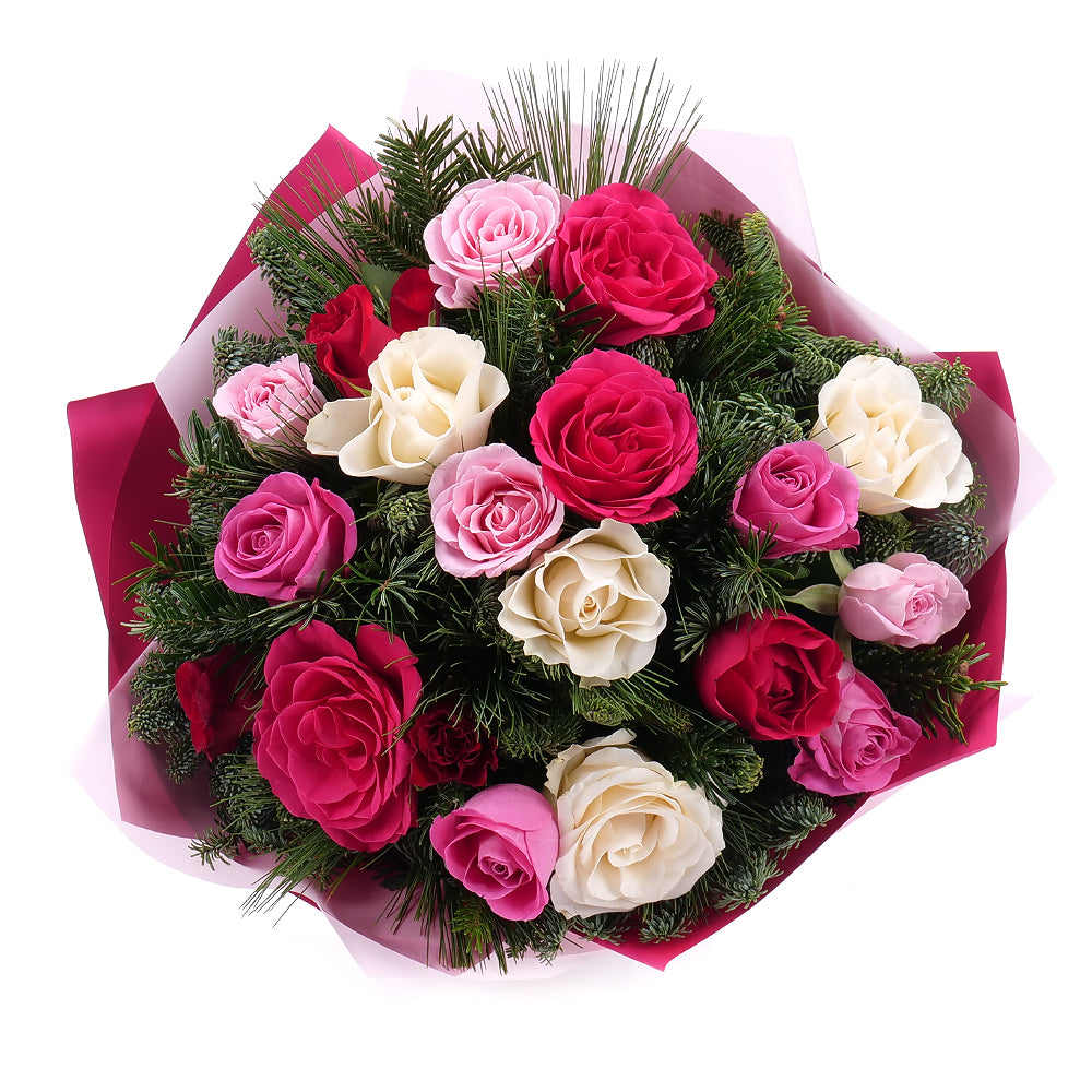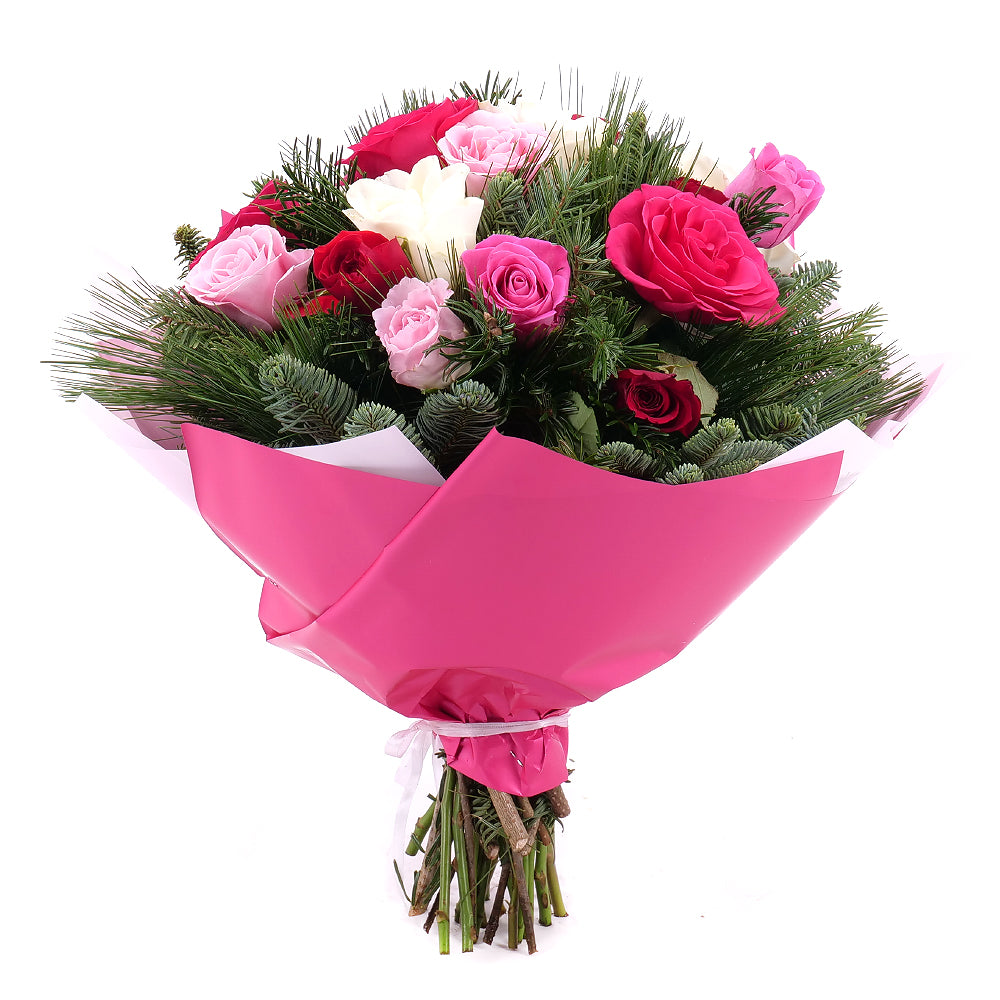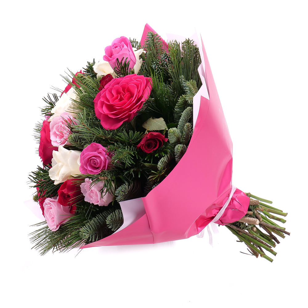 Romantická zimní kytice z jemných růžových růží v různých odstínech – od pastelově růžové až po sytější starorůžový tón. Tyto nádherné květy symbolizují lásku a eleganci, přičemž jejich barvy vytvářejí harmonický a jemný kontrast. akcent, čímž celek působí jako dokonalé spojení jemnosti a sezónní krásy. Tato kytice je ideální jako dárek pro výjimečné chvíle, sváteční období nebo jednoduše na zútulnění vašeho interiéru během zimy. Kombinace růžových tónů a zelených větviček působí osvěžující a příjemná.