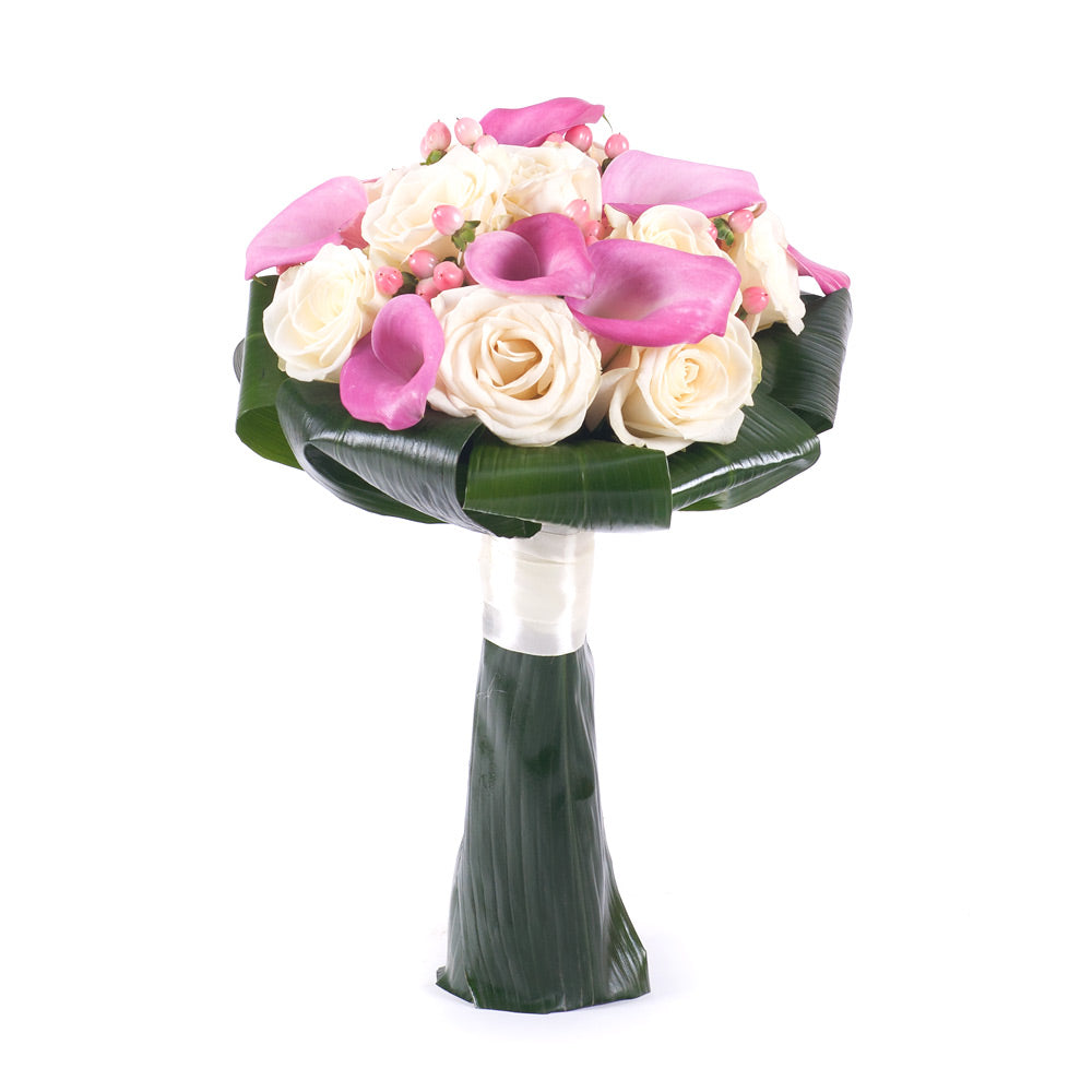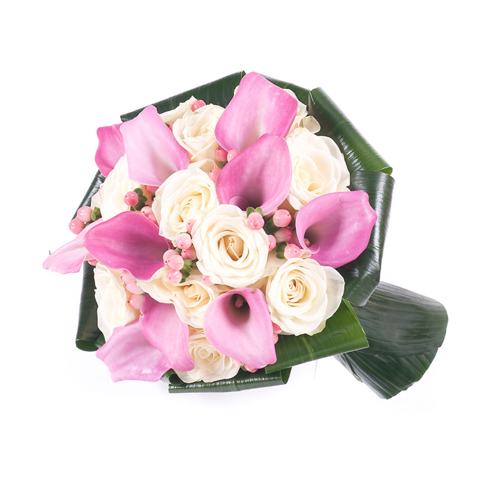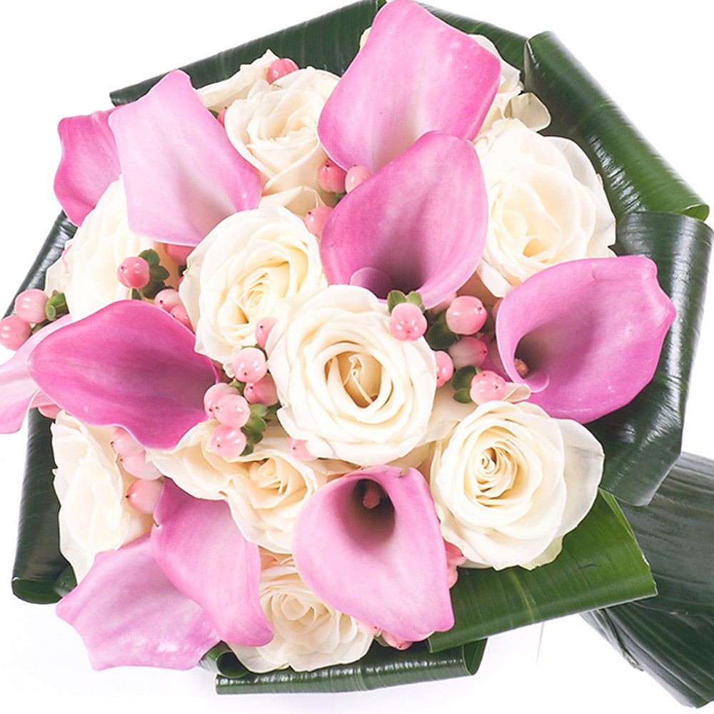 Kytica je aranžovaná z kombinácie 12 krémových ruží, 10 ružových kál, ktoré sú doplnené hypericom a dekoračnou zeleňou.