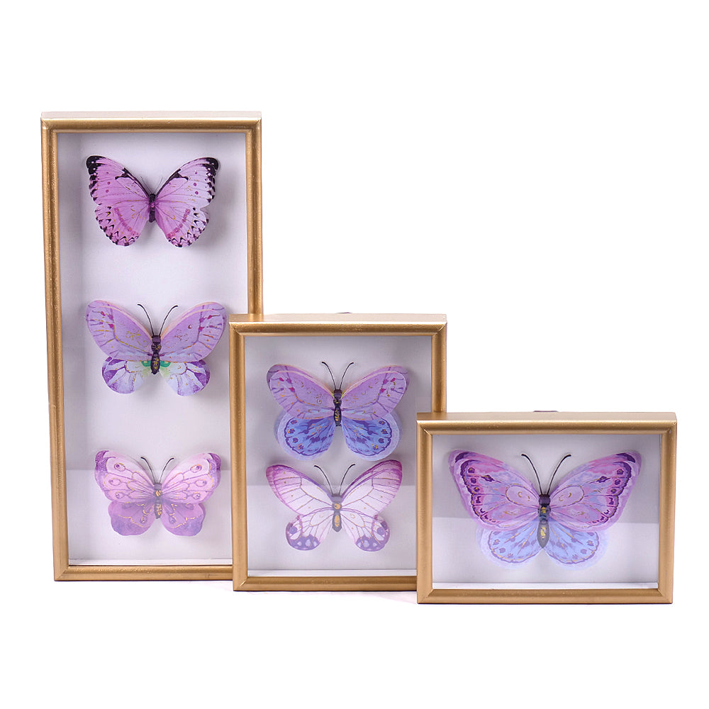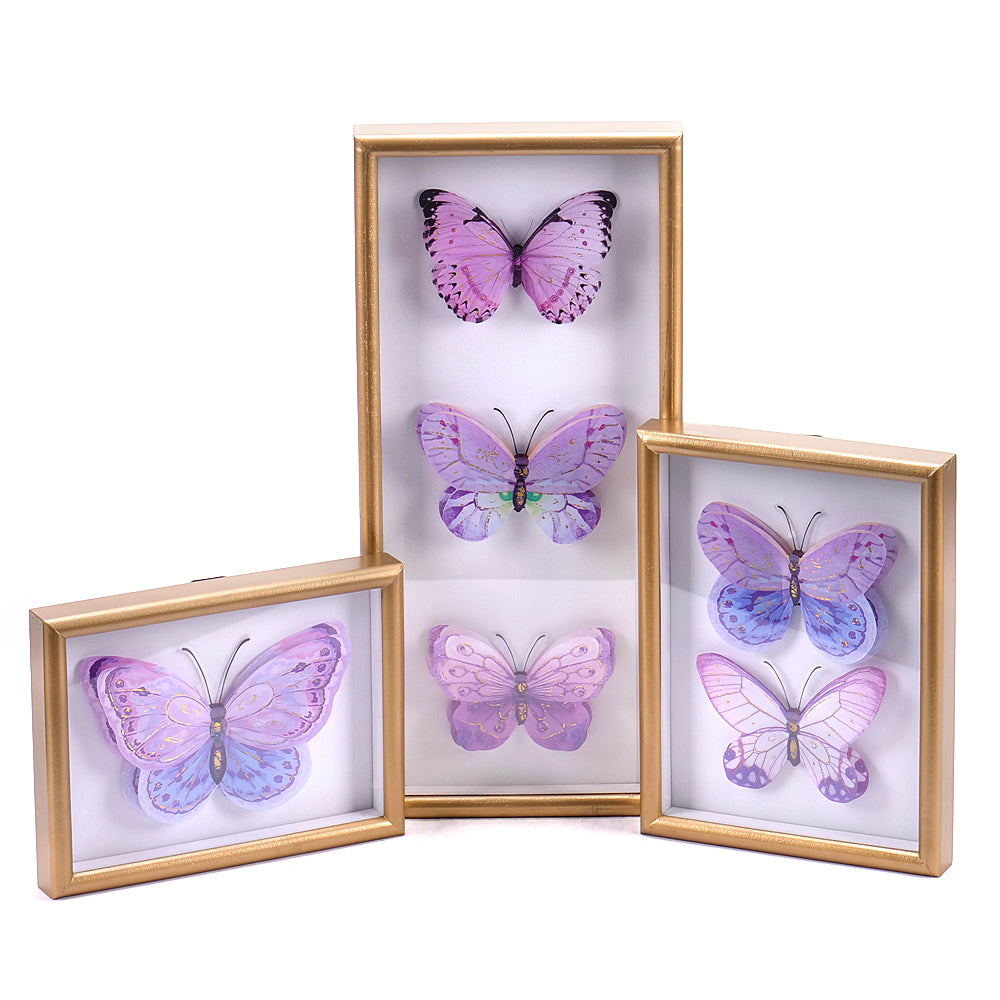 Sada obrazů s motivem motýlů – 3 ks různých velikostí.