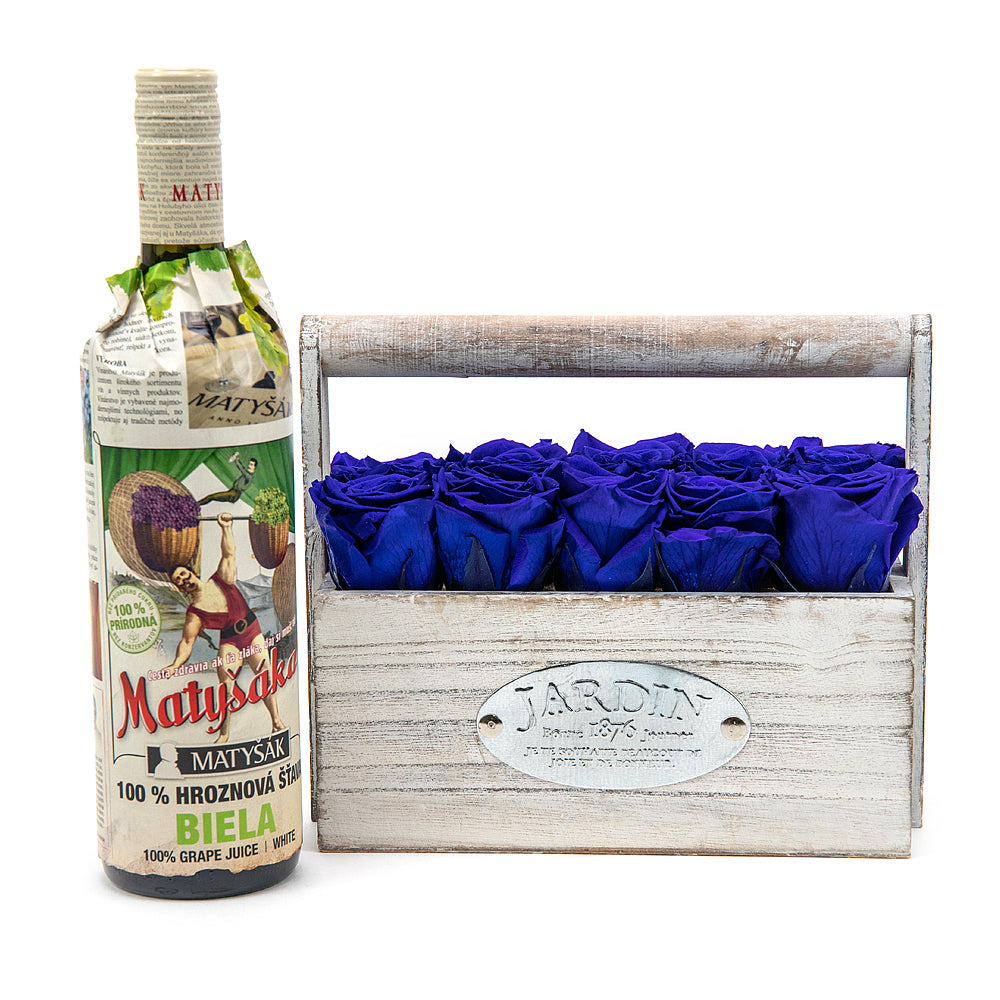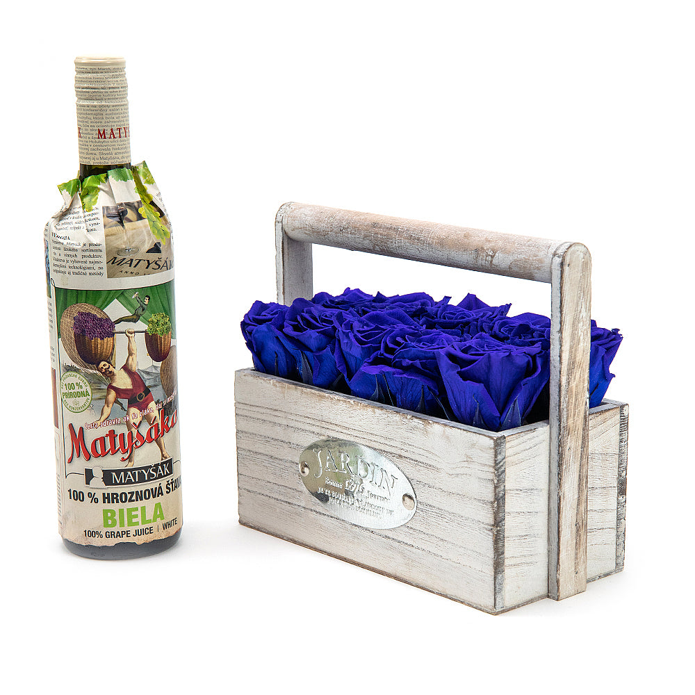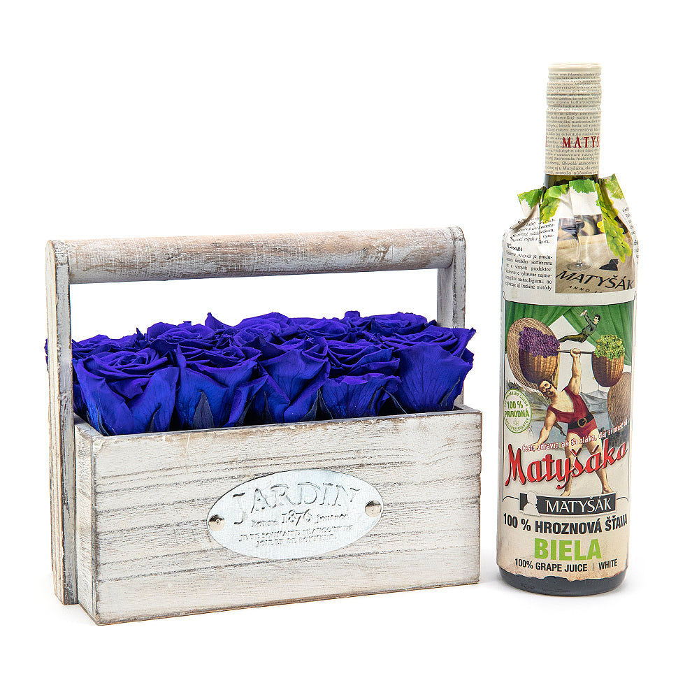 Elegantný drevený box s trvácnymi In Eterno ružami modrej farby.SloženíMatyšák Hroznová šťáva bílá 0,75l - 1 ks Přečtěte si více