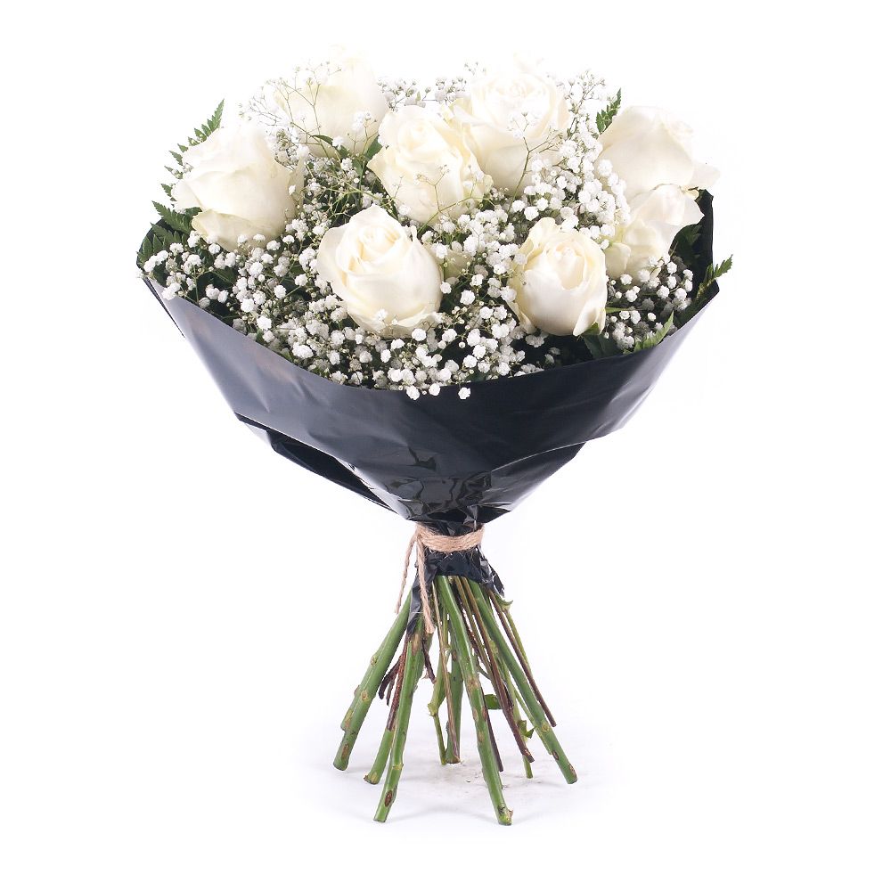 Uctíte si ty, kteří Vám chybí, jednoduchou a elegantní smuteční kyticí z 10 krémových růží a gypsofily.