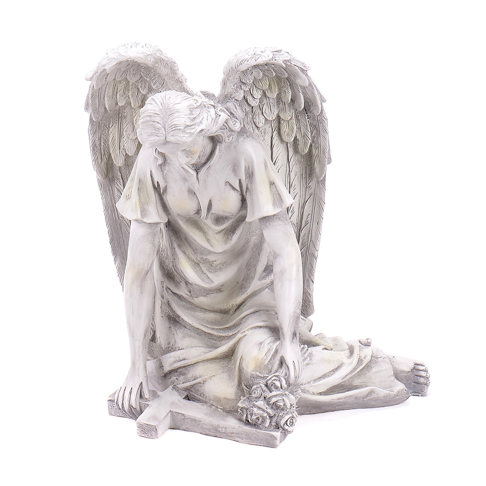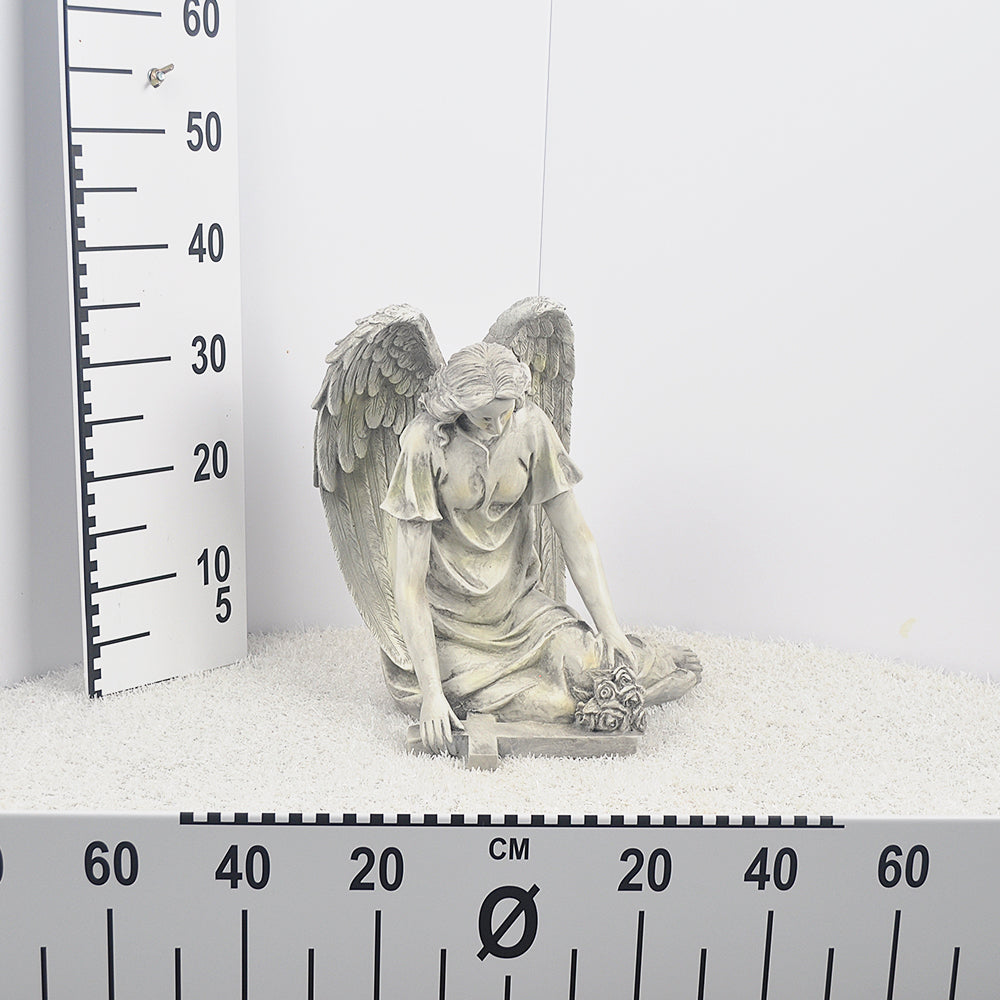 Smuteční socha anděla o rozměrech: 37 cm x 26.5 cm x 38.5 cm.