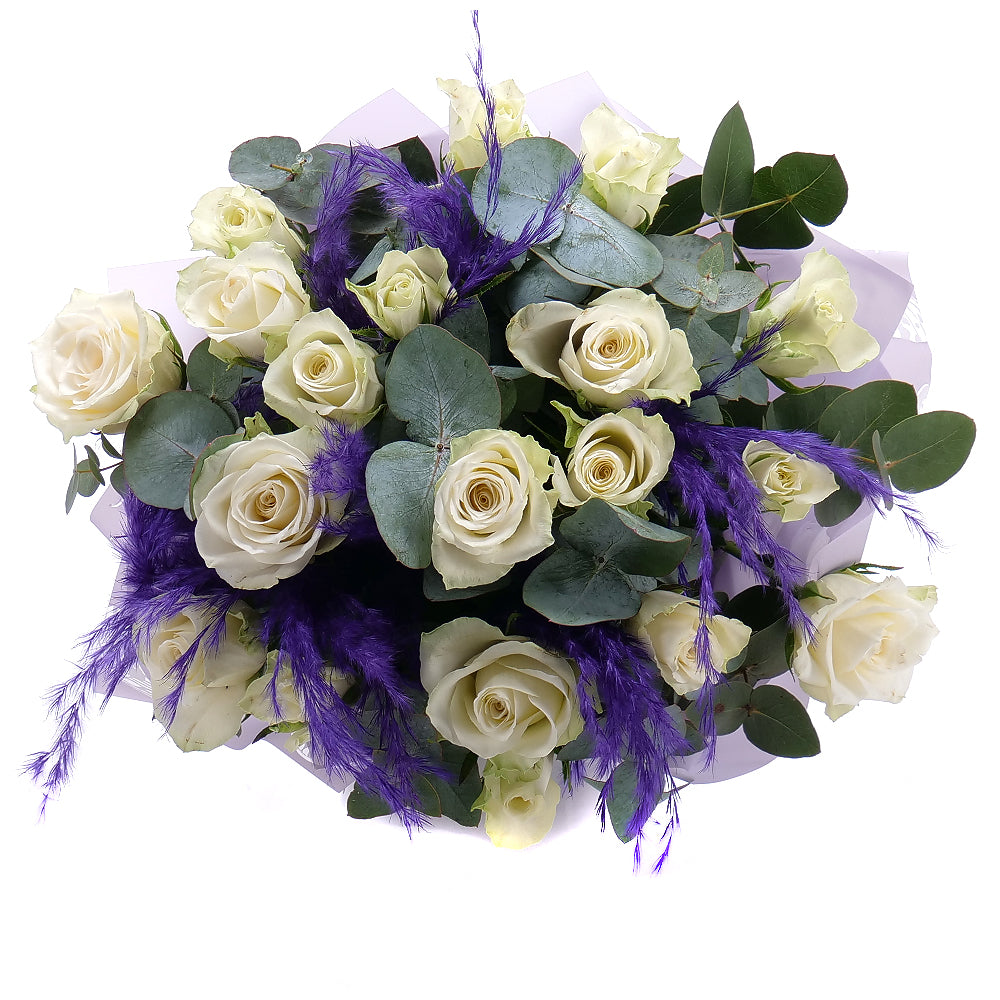 Elegantní kytice bílých růží v kombinaci s přírodními travinami a dekorativní zelení. Přečtěte si více