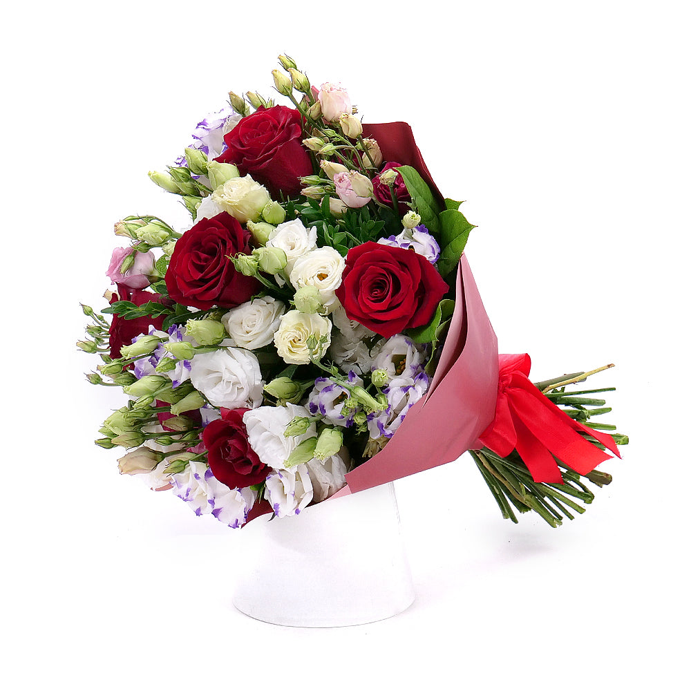 Sweet červené růže a barevný lisiantus