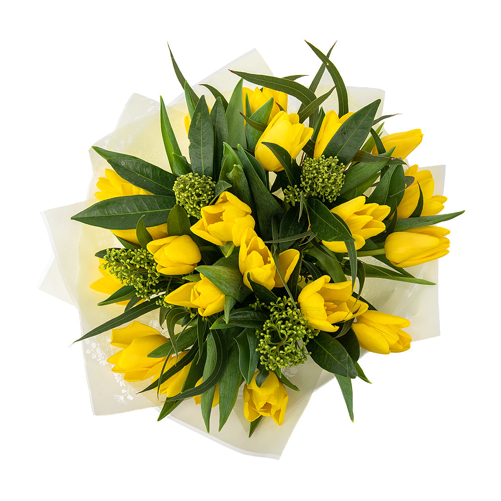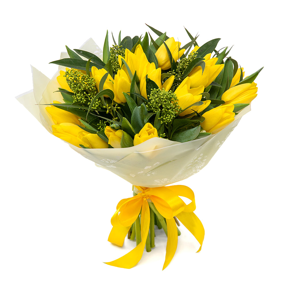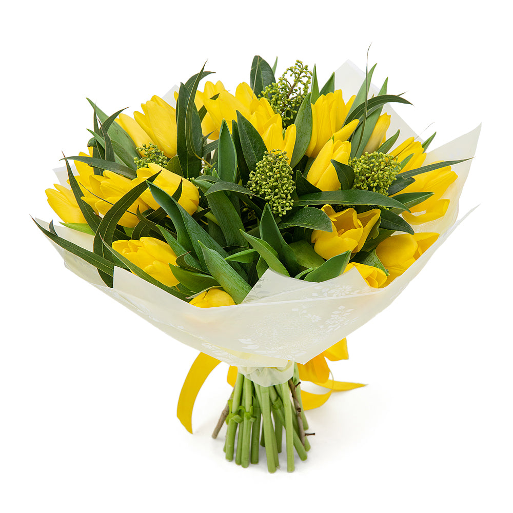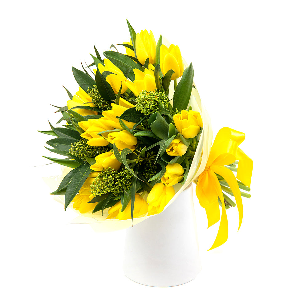 Žiarivé žlté tulipány ako darček alebo len tak pre potešenie.